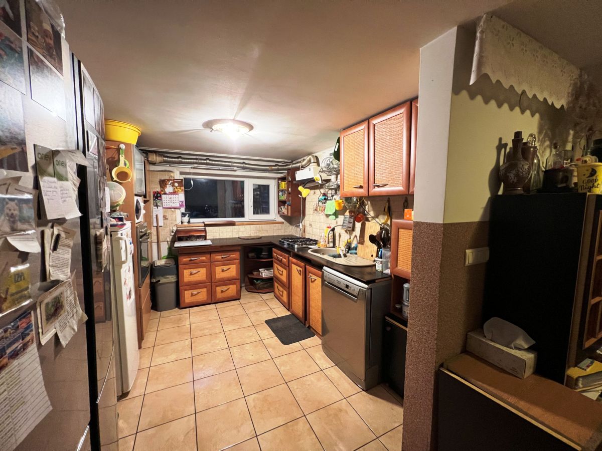 Wysoki parter: kuchnia, jadalnia, pralnia, bokówka, pomieszczenie gospodarcze z piecem gazowym Vaillant i piecem na węgiel 24 kW Andrzejewskiego, garaż około 18 m2