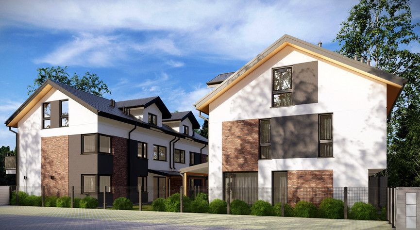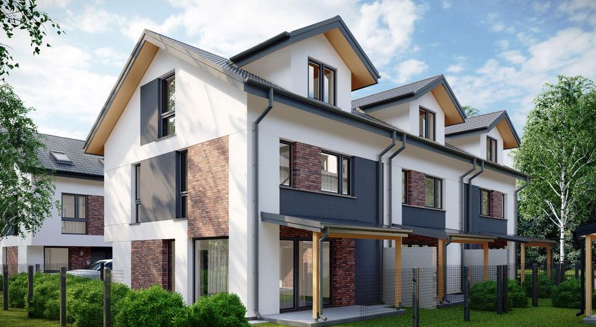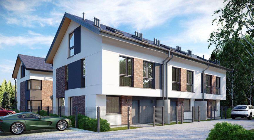 Domy jednorodzinne w zabudowie szeregowej na kameralnym osiedlu na obrzeżach Białegostoku.