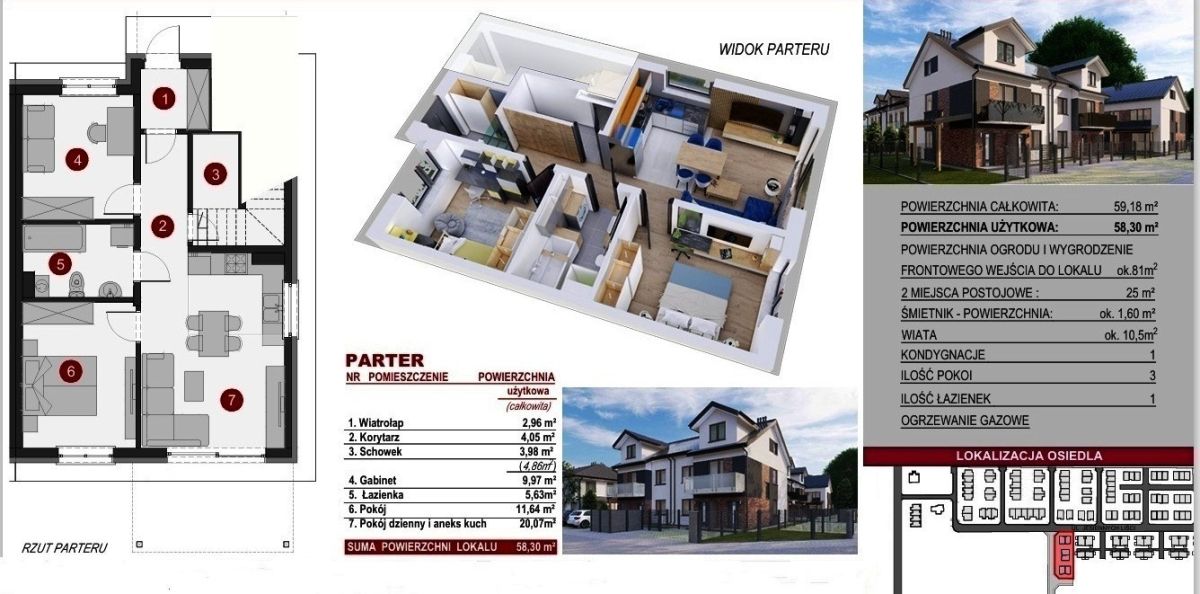 Mieszkania na parterze, 3 pokoje, pow. 58 m2. Z ogródkiem o pow. 63 m2 do 106 m2.